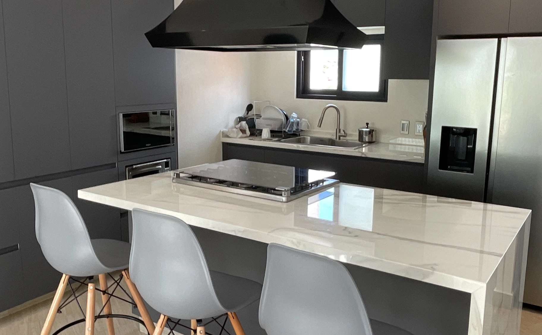 Logramos el maridaje perfecto entre cocina y espacios de convivencia. Creamos una cocina abierta, atractiva, cómoda para ser usada diariamente, pero a la vez, ideal para reuniones con invitados para compartir y vivir momentos familiares memorables. Estamos seguros que con su calidez, buen trato y excelente gusto han hecho sentir importantes a quienes los visitan.