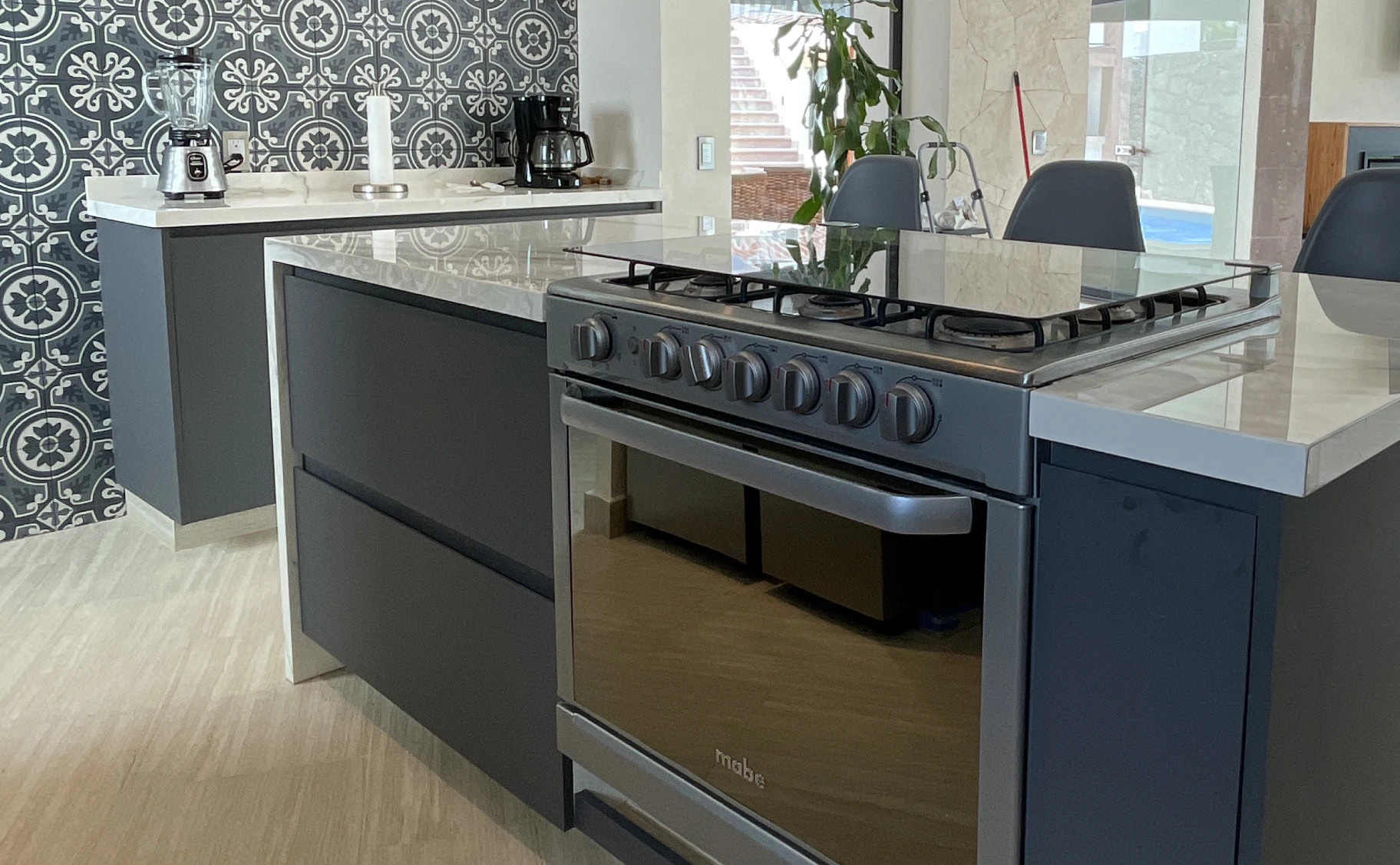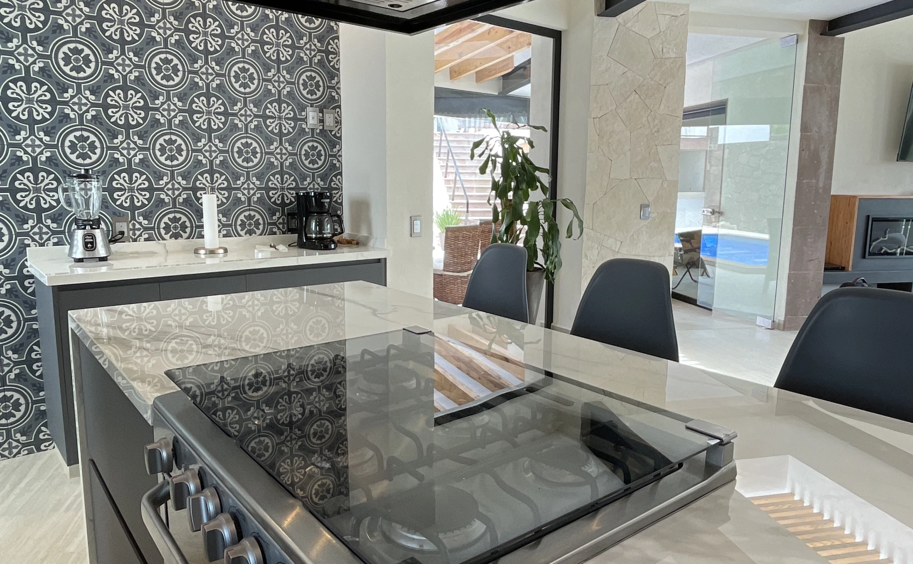 Hacer una cocina muy acogedora y familiar como un espacio para compartir con todos sus invitados a través de un diseño versátil que integrara la cocina como un elemento decorativo y funcional dentro de los espacios de convivencia; el otro reto era instalar en Tecozautla, debíamos ser my precisos en el espacio y todos los componentes que íbamos a entregar (cualquier error ponía en riesgo el presupuesto que teníamos para entregar en tiempo).