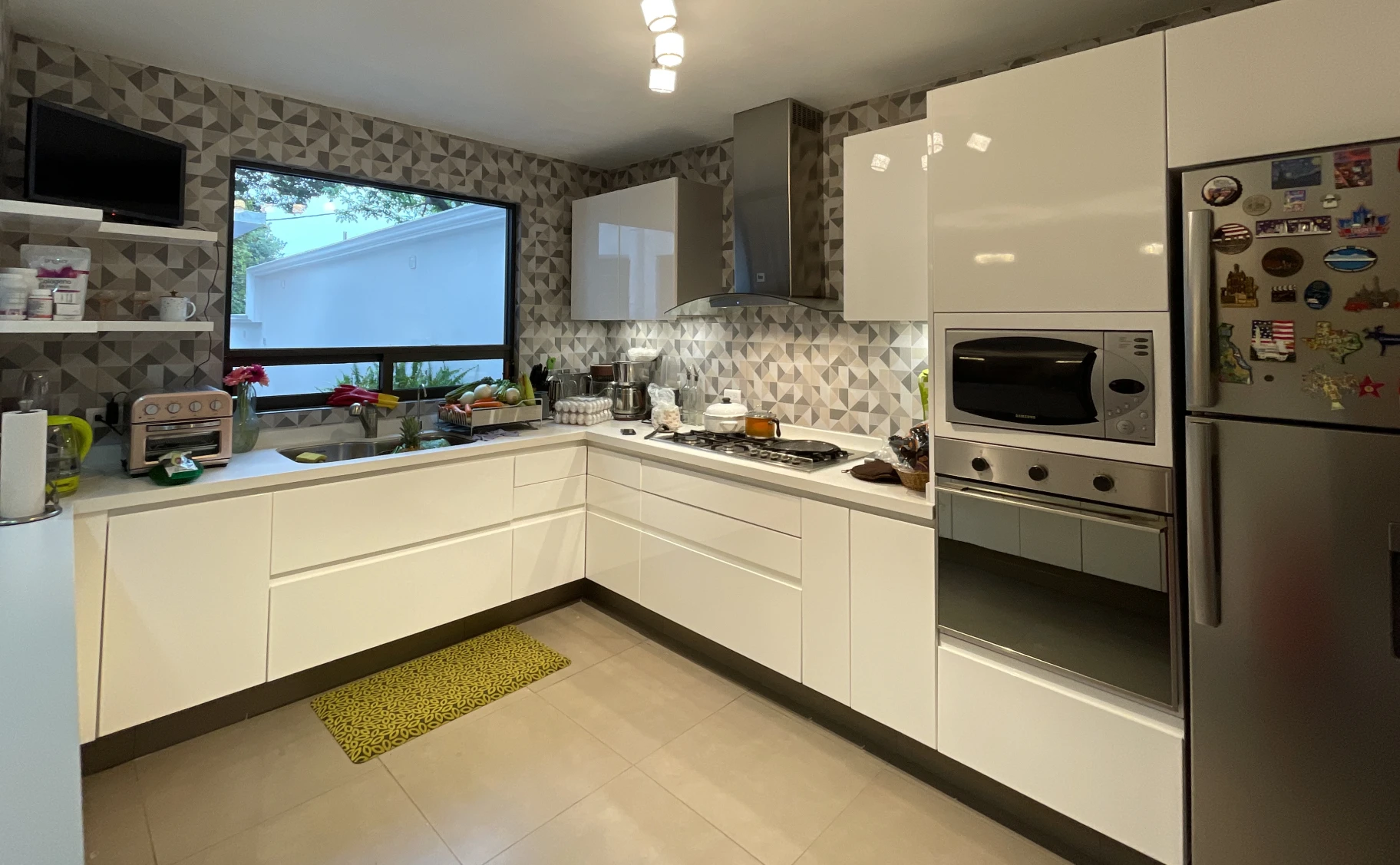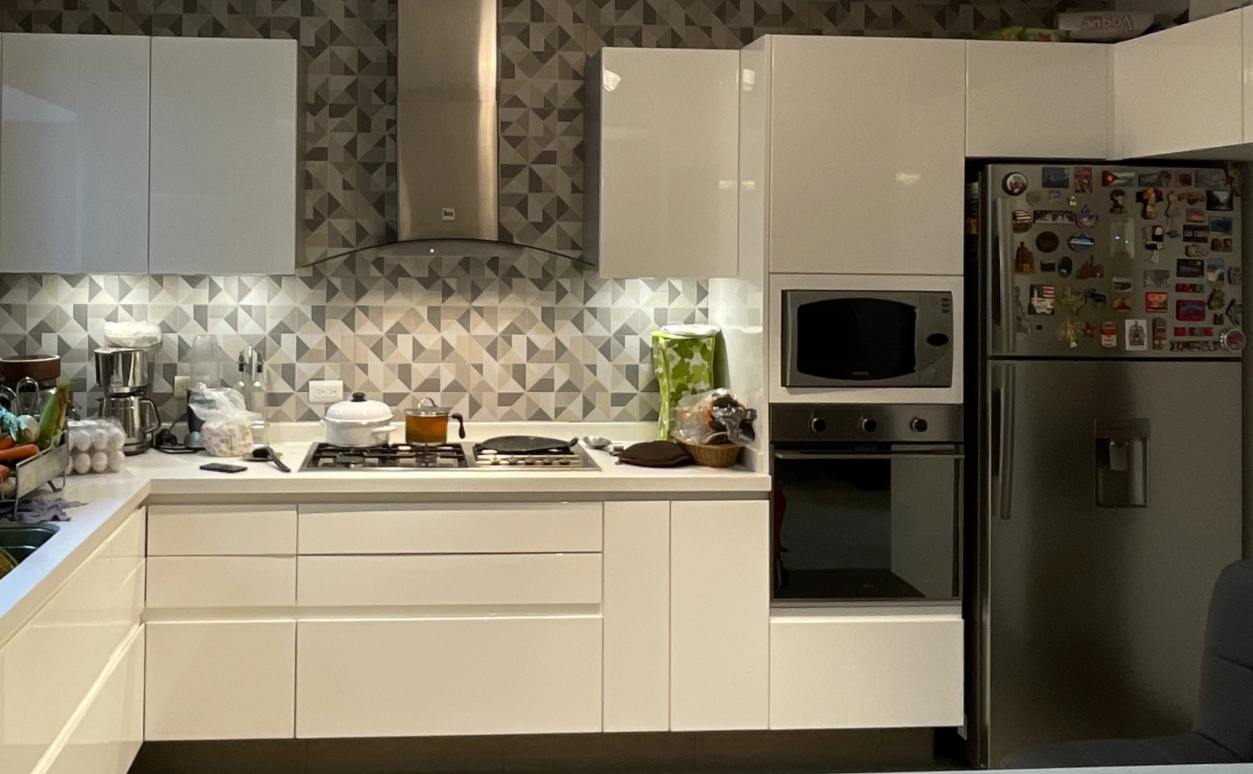 Doña Virgina consiguió una cocina muy diferente a la que tenía planeada, era amplia, sin obstáculos, de diseño muy limpio, muy elegante, blanca, al alto brillo. Ganó mucho más espacio, tenía todo más a la mano, sin necesidad de vivir hincada buscando trastes en nichos innecesarios, una cubierta de cuarzo de ensueño y en general, una cocina mucho más cómoda, con una configuración que le permite hasta el día de hoy, ser más eficiente, disfrutar más de preparar alimentos y poder servir a los suyos con una mejor disposición y mucho amor.